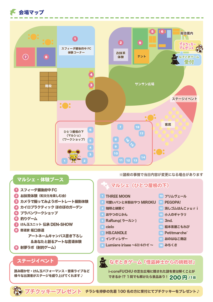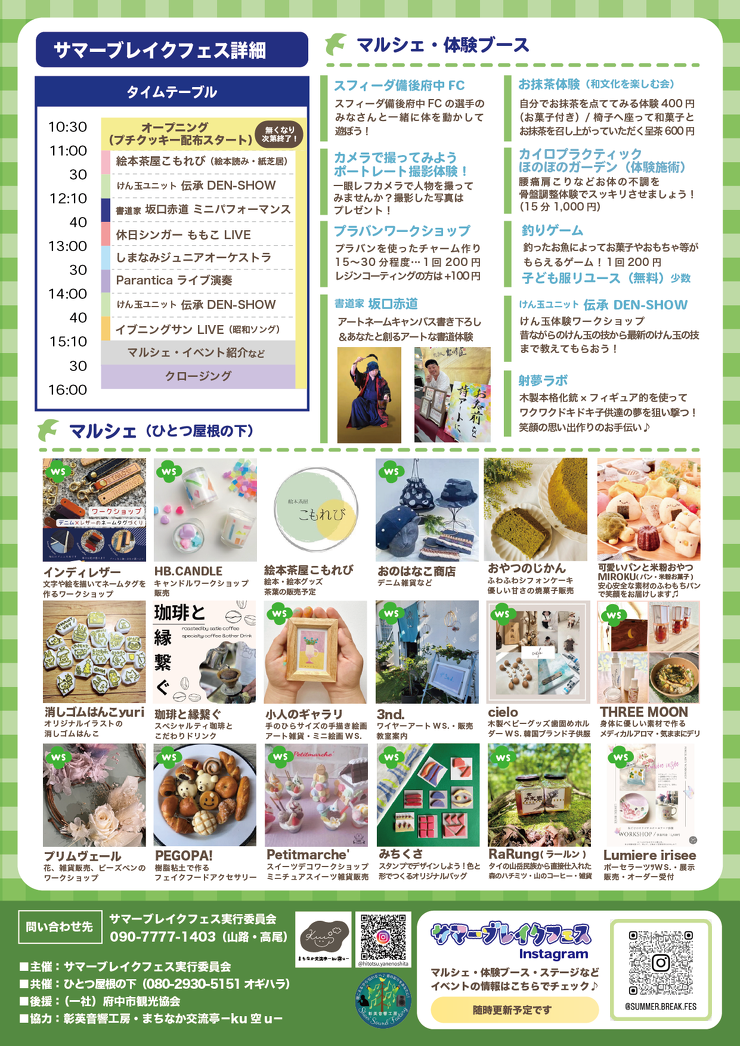 2025年8月8日(金)更新 夏休みの思い出づくりに、サマーブレイクフェス☆ 【日時】 8月9日(土) 10:30~16:00 【場所】 i-coreFUCHU 芝生広場 【イベント内容】 ワークショップ、マルシェ、ライブイベントなど 前へ お知らせTOPへ 次へ