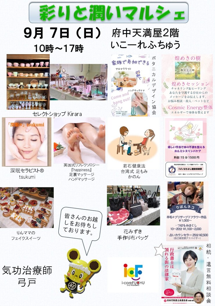 【日時】 9月7日(日) 10:00~17:00 【場所】 i-coreFUCHU 芝生広場